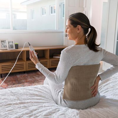 Sunbeam King size 12 x 24inch microplush moist/dry heating pad with 2 hour auto off, machine washable, 4 heat settings, moist heat option provides more relief and deeper penetrating heat.